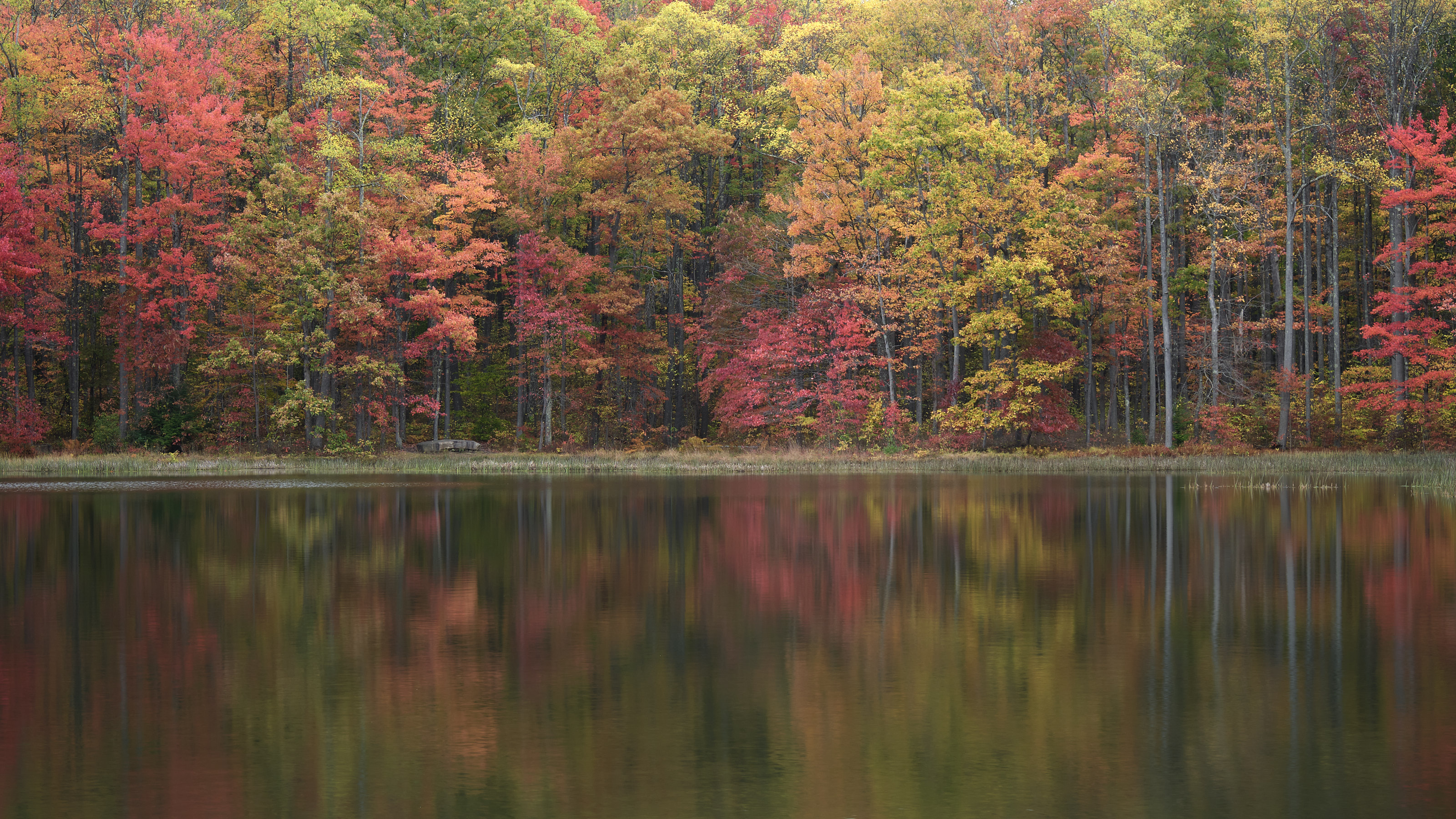 I photograph this scene every fall. The composition is similar to past years, but I think the light and color this year were better than previous attempts. The reds were a lot more vibrant and somewhat dominated the scene. The stillness of the water helped create a perfect reflection.